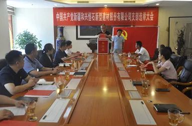 7月23日,新疆和興恒石新型建材股份有限公司召開支部黨員大會暨選舉大會,經濟技術開發區(頭屯河區)高鐵片區黨工委委員、黨政辦主任王艷同志,黨建指導員封雙貴同志及公司全體黨員參加了會議。會議選舉產生了公司第一屆黨支部委員會和支部書記,標志著公司黨支部正式成立。